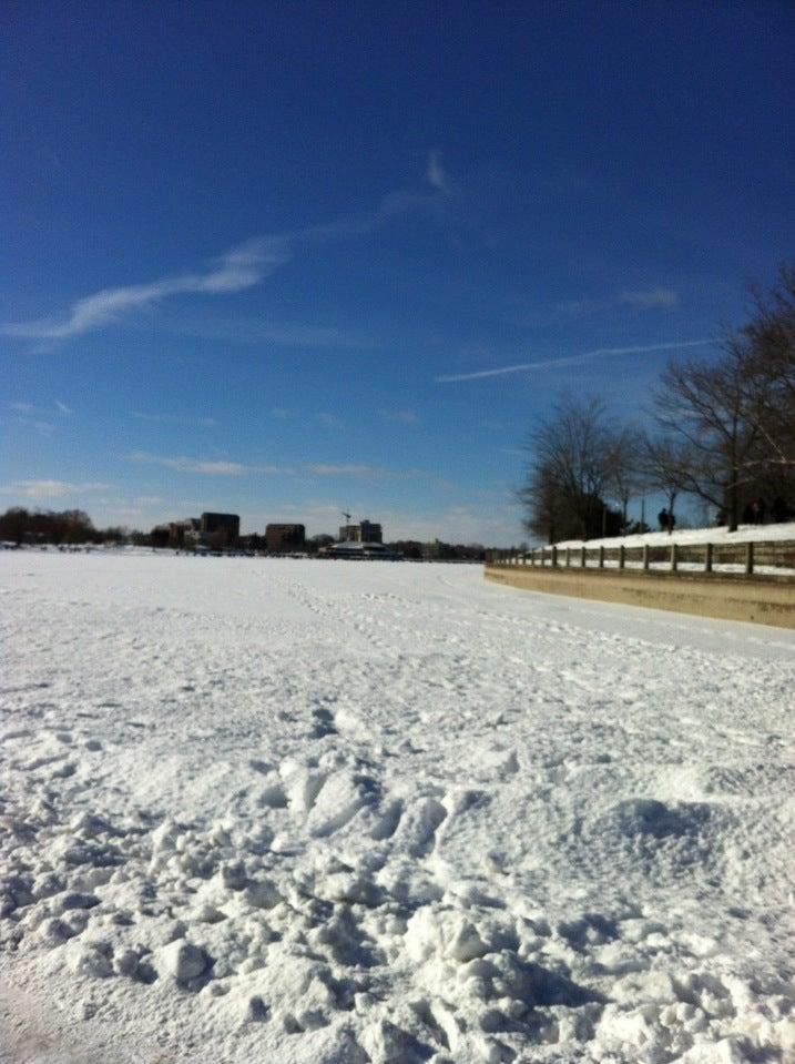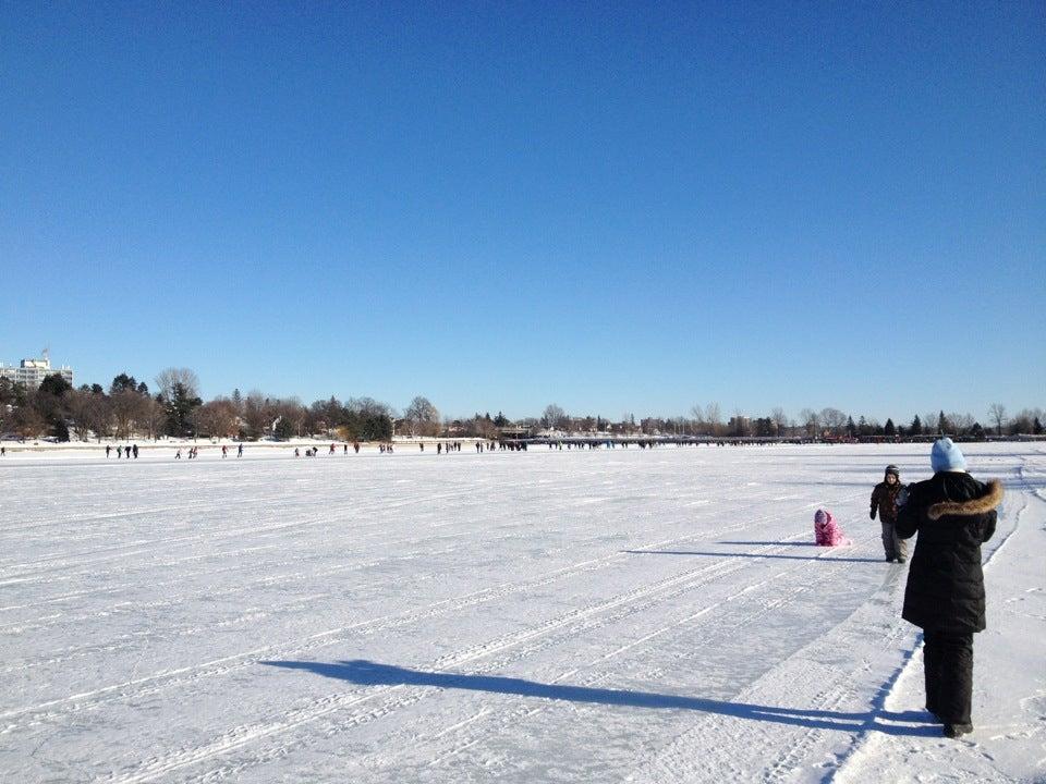 Large pavilion on Dows Lake with restaurants and a marina that serves as a year-round recreational center.