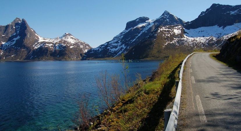 The 102-kilometer long Senja National Tourist Route is striking, dramatically stretching out into the indomitable Norwegian Sea. Technically the route is only 88 kilometers long but is expanded an additional 14 kilometers or so via detours to both the village Husoya and coastal Mefjordvaer. Along the route, mountains plummet downward into the ocean, creating breathtaking scenes and the journey’s most outstanding attractions. The narrow road carves in and around twists and turns alongside icy waters flanked by beautiful fjords. Some of Norway’s most beautiful beaches are set along this coast but unless you’re as tenacious as the Finns with their hot saunas followed by ice-cold plunges, leave the swimming for a place where temperatures are at least slightly warmer. Continuing on, you’ll pass houses perched in surprising locations and small fishing villages where narrow roads wind through dramatic landscapes like the views across dazzling Bergsfjord.