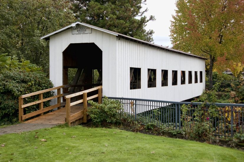 The southern Willamette Valley is filled with pockets of serene beauty. The gorgeous rolling hills, lush fields, and clear rivers are made all the more special when an intrepid explorer comes upon one of Oregon’s many covered bridges. Cottage Grove, the “Covered Bridge Capital of Oregon,” has six of these bridges near the city, all distinct and equally captivating. Get some of the best glimpses of the landscape by biking the Row River Trail, which shows off a couple of those covered bridges. The trail was once a railroad track, made famous in the 1986 movie Stand By Me, particularly the section crossing Mosby Creek, which is made familiar from the opening scene of the film. The historic theme continues in central Cottage Grove, which features impressive murals decorating the well-preserved buildings.