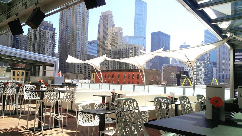 It boasts itself as the highest indoor-outdoor rooftop lounge in the city of Chicago and this unique bar features a state of the art retractable roof that allows visitors to enjoy the lounge all year round. This 10,000 square feet space features uninterrupted views of the city’s skyline. Chic modern furniture sets the stage, along with ultra-modern umbrellas, splashes of color and superior service.