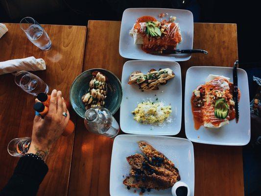 First off what a cute little spot right by the water! Chose to sit outside because it was a nice sunny breezy day. We were five people and we ordered 5 dishes to share. Chicken wings: 10/5 Came...